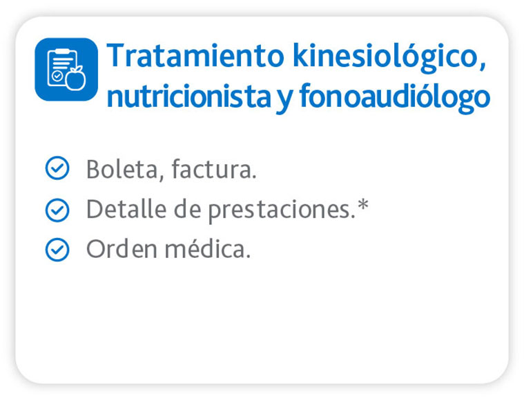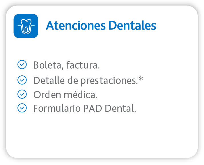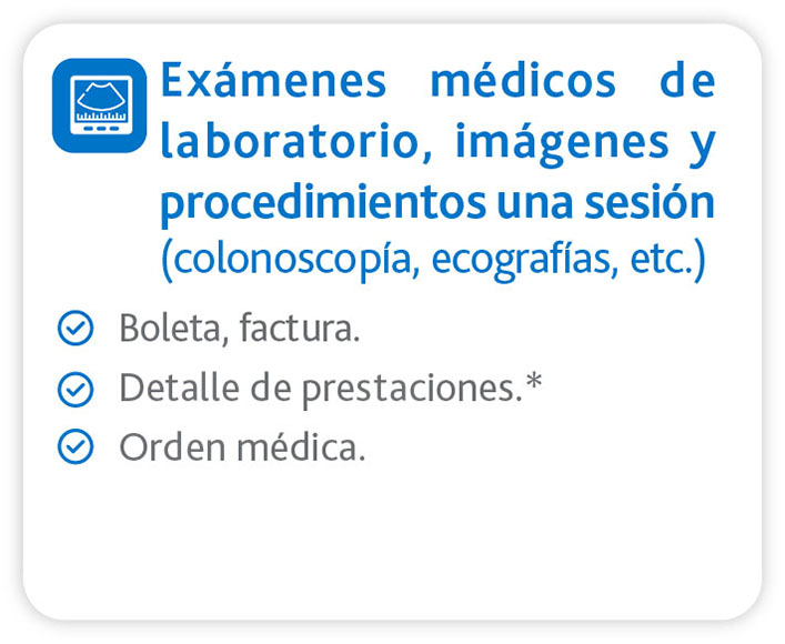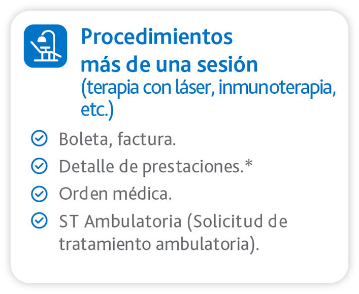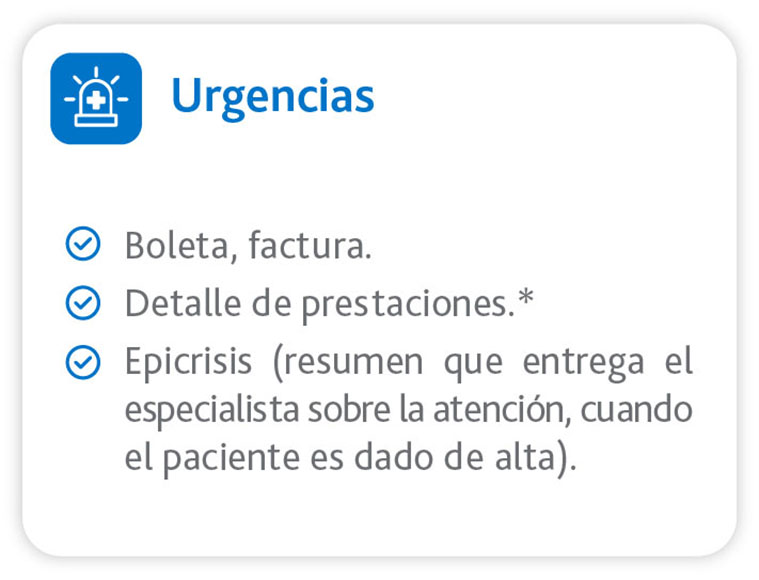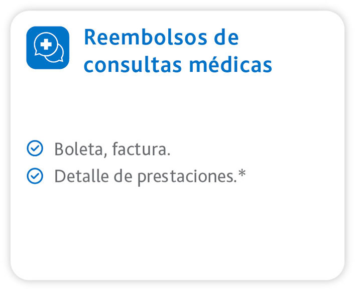 (*) Según el centro médico donde realizaste la consulta, el detalle de prestaciones podría estar incluido en la boleta o factura, si no es así, debes subir el archivo con el detalle de las prestaciones realizadas (ej.: Consulta medicina general adulto).