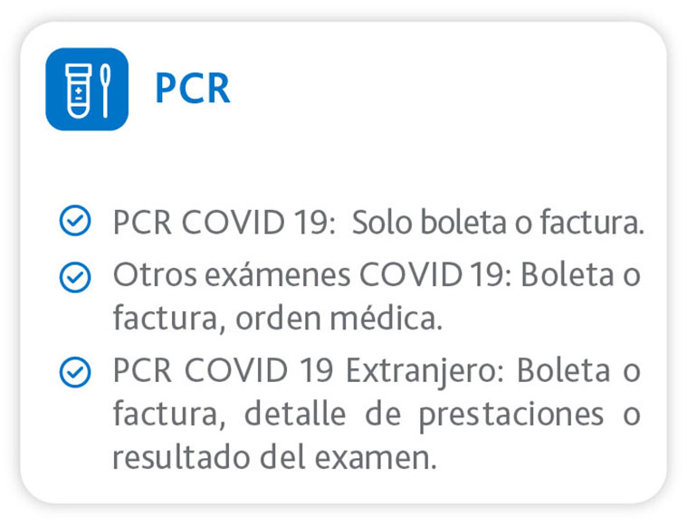• Las boletas de PCR en el extranjero, deben tener detalle de cantidad de exámenes realizados (boletas por más de un examen).
